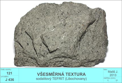 všesměrná textura - jednotlivé minerály vůči sobě nemají žádné zřetelné uspořádání