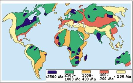 Absolutní stáří reprezentuje čas, který uplynul od vzniku určité horniny, případně konkrétní formace hornin. Jak ukazuje obr. 3.15 mají nejstarší horniny zemské kůry stáří 3,8 mld. let.