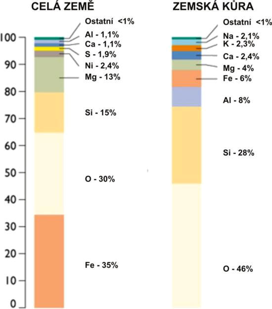 Celkové látkové složení kontinentální kůry reprezentuje obr. 3.6. Dominantními minerály kůry jsou především křemičitany (silikáty), oxidy a uhličitany. Mezi horninami výrazně dominují magmatity (viz obr. 3.8).